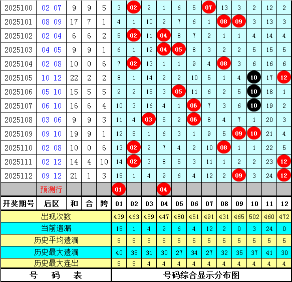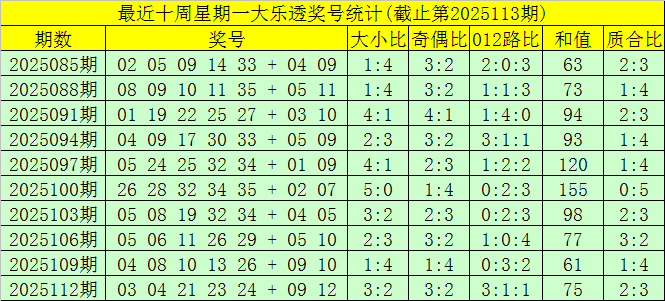 后划分析:最近10周星期一全翻开出2次,全小开出1次,一大一小开出7次;一奇一偶开出7次,全奇开出3次,全偶开出0次,本期后区凝视两码01+04。