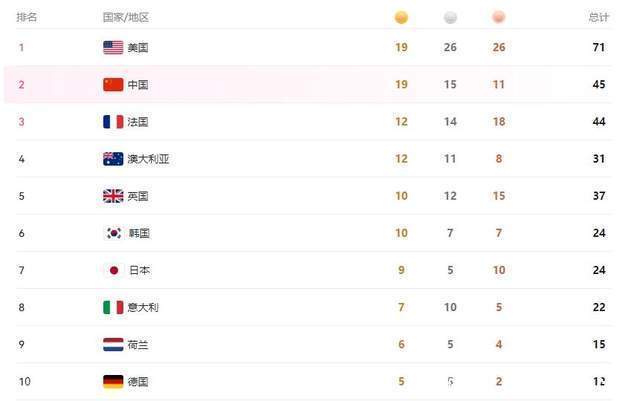 在2024年巴黎奥运会大幕拉开后,中国体育代表团就凭借奥运健儿的出色阐述,万古分稳居奖牌榜榜首的位置,不外雷同实力辞让小觑的好意思国队,在第八个比赛日艰苦奋斗,贯穿卓著敌手,将名次栽培到了第二位,第九个比赛日,中国奥运健儿接续了苍劲的势头,单日拿到了3金3银2铜的成绩,但仍是被好意思国队卓著,以19金15银11铜的成绩,名次奖牌榜第二!