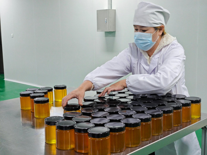 走进蜂蜜厂坐蓐车间,2000平方米的空间里,全自动坐蓐线高速开动。2021年按GMP尺度建成的这条坐蓐线,日产可达10000瓶,终明显蜂蜜加工的智能化与范例化。