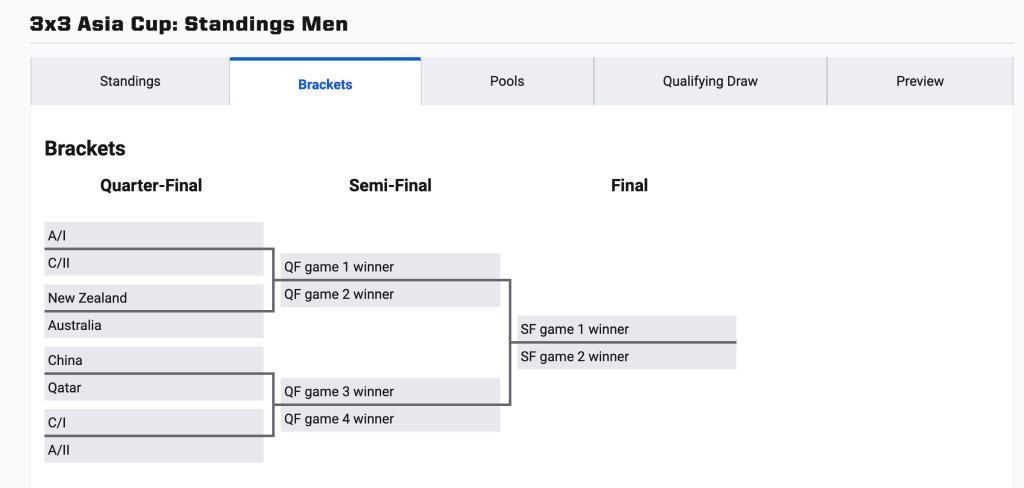 淘汰赛对阵,中国男队将在四分之一决赛中对阵卡塔尔队。图片来自海外篮联三东说念主篮球官网