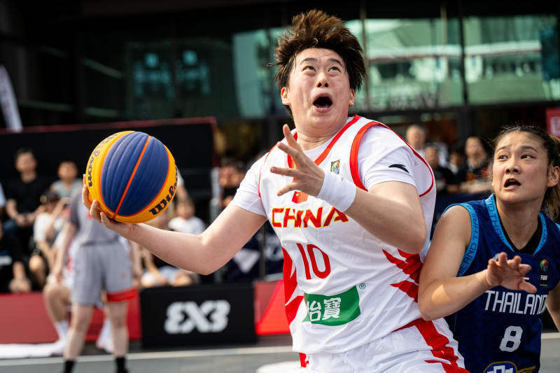 中国队球员张芷婷(左)在与泰国队的比赛中。图片来自海外篮联三东说念主篮球官网
